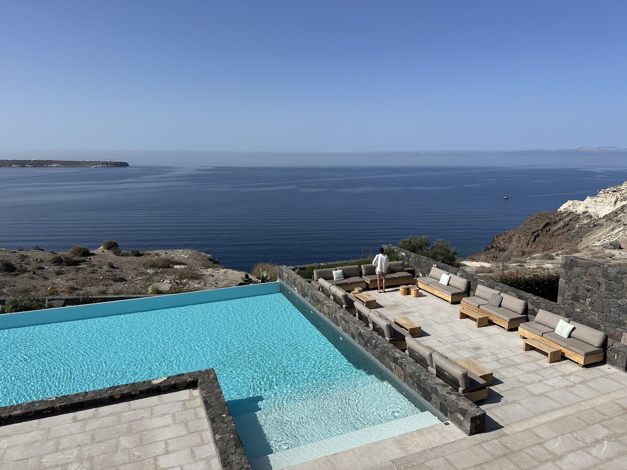 The Canaves Oia Epitome is family run with customer service at the forefront. As you arrive at the hotel, you are greeted by an exceptional member of their team, who takes you through the whole welcome and check in process. With a welcome drink in hand and a seat in the very chic lounge area, you are able to indulge in the tremendous views from the moment you arrive. The whole resort has a very private, zen feeling to it which make you instantly relax.
