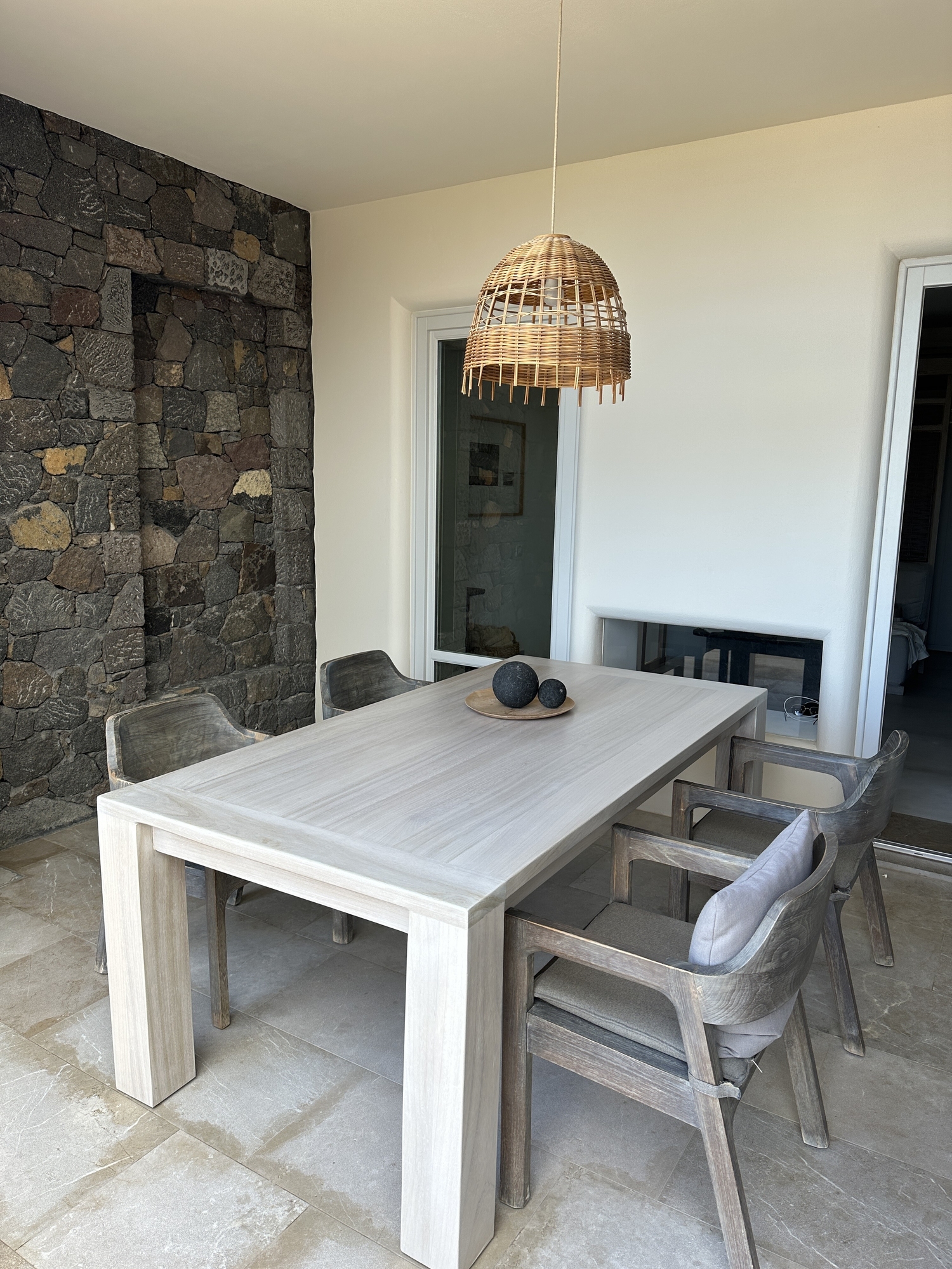 The rooms and luxury villas are spread out with a very private feel in each one. Every room offers stunning views of the Aegean Sea. They are spacious, modern, and beautifully designed, with all the amenities one could need for a luxurious stay.